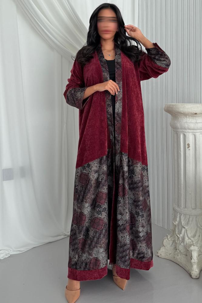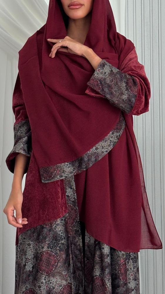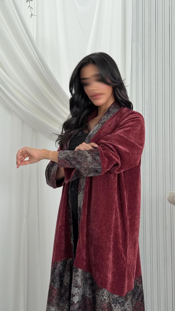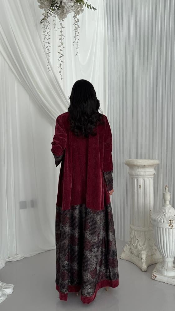 عباية مخمل قطيفة برغندي